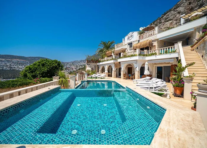 Located just 600 m from the Kalkan Public Beach, Scenic Hillside Villa With Pool Terrace Kalkan offers an outdoor swimming pool for guests to relax by. Featuring a sauna, this property is within a 10-minute drive of the Kaputaş Bridge.